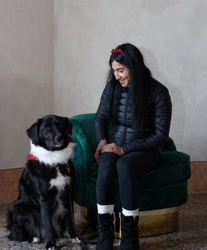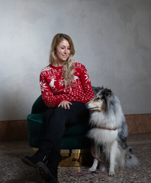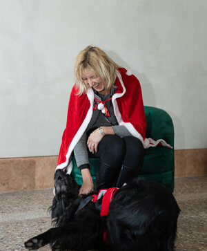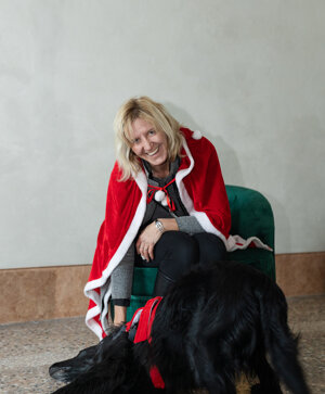Nella sala dell’orologio un brindisi per pet & human con un flut di spumante e una fetta di panettone.